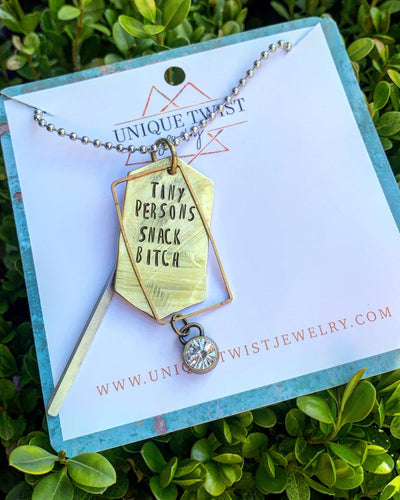 Unique Twist Jewelry - "Tiny Persons Snack Bitch" Hand-Stamped Necklace