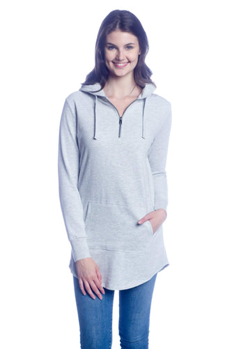 Long Sleeve 1/4 Zip Hooded Sweatshirt Tunic Top