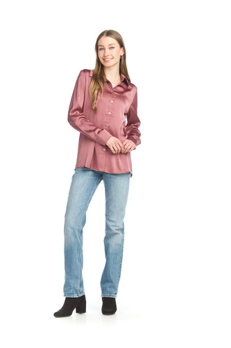 Satin Abstract Print Boxy Top with Rib Trim 253922