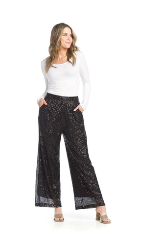 Sequin Wide Leg Pant With Side Zipper