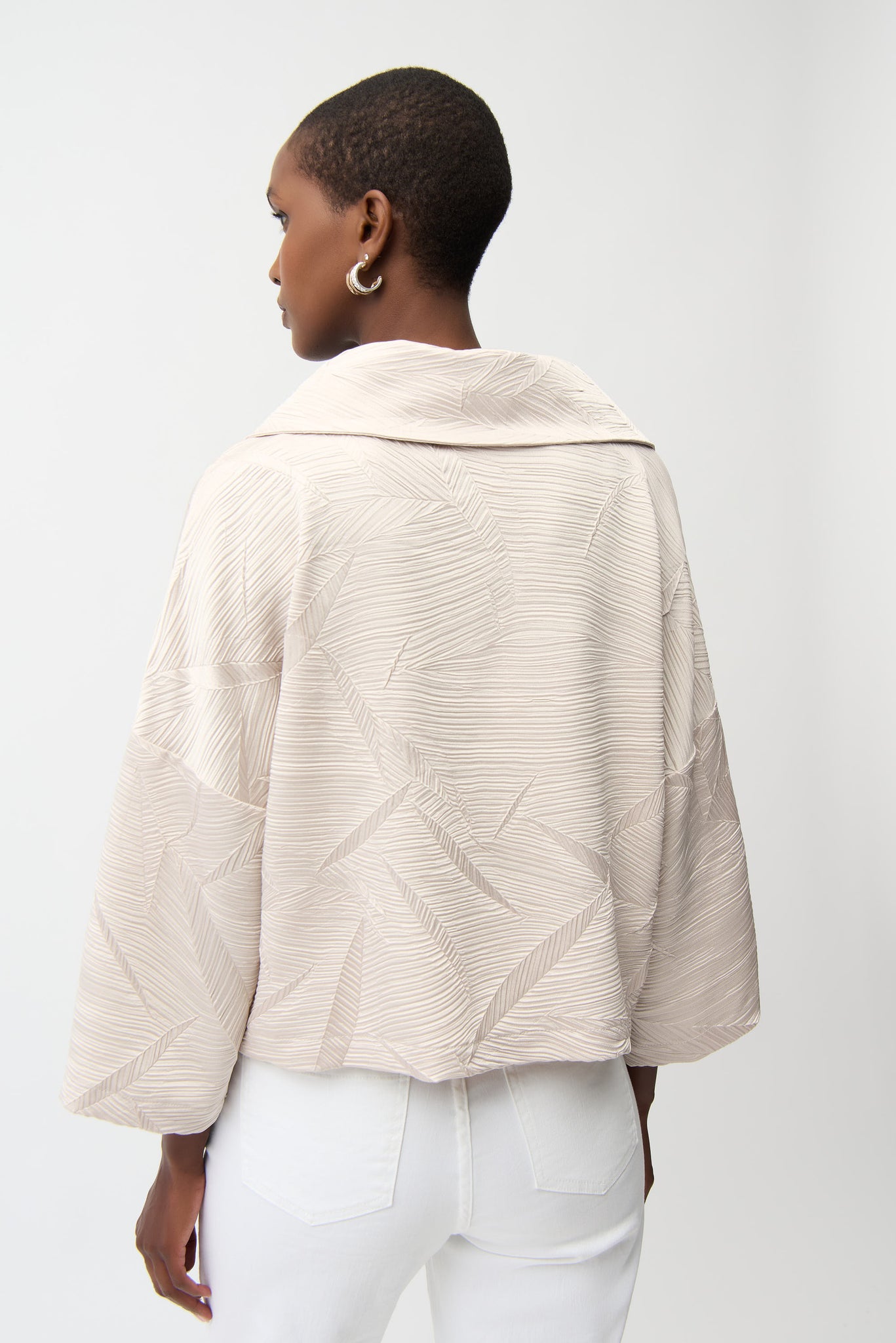 Pleated Satin Boxy Jacket With Overlay Collar 261241