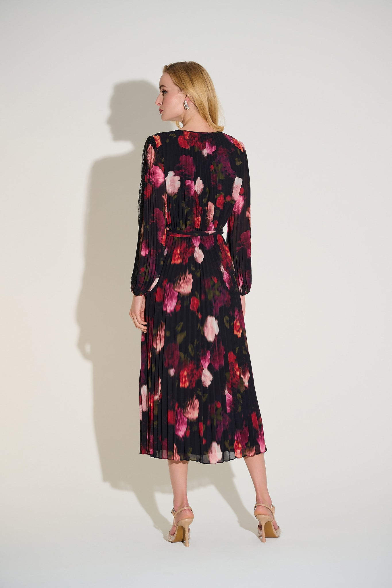 Nothing captures elegance quite like this pleated chiffon dress, adorned with a delicate floral print and accented by long puffed sleeves with intricate lace details. A waist-defining sash belt enhances its flattering fit-and-flare silhouette, while a front slit adds a touch of allure. Perfect for special occasions, this dress effortlessly combines timeless beauty with modern sophistication. Part of the Signature Collection.