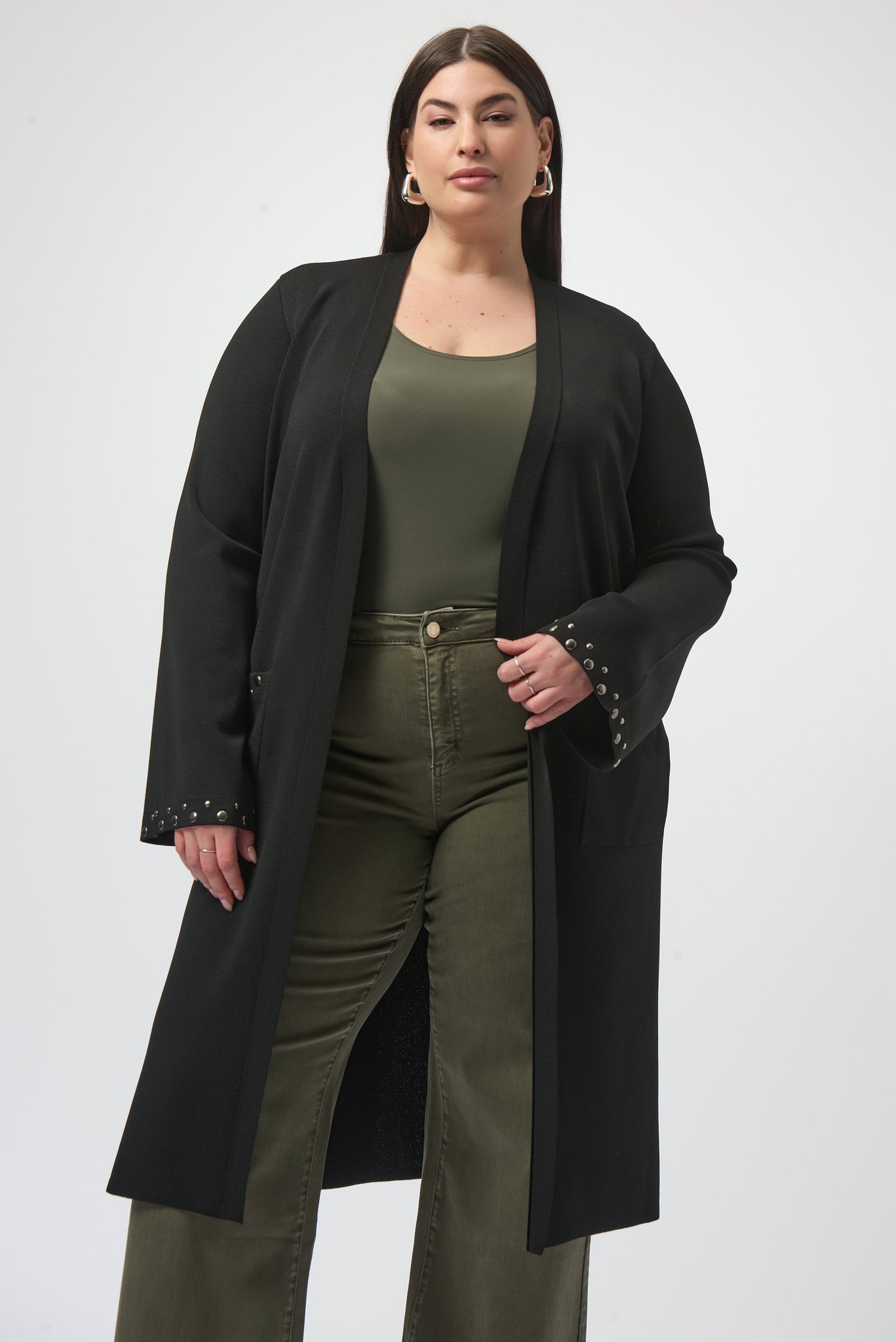 Don’t be fooled by its clean lines—this sweater knit cover-up is full of sophisticated details that set it apart. The open-front design is enhanced with eye-catching stud detailing and charming patch pockets, while long bell sleeves add a touch of chic comfort. It’s the perfect layer to elevate any look with ease.