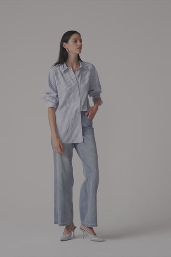 Tencel Stripe Print Boxy Blouse 261931
