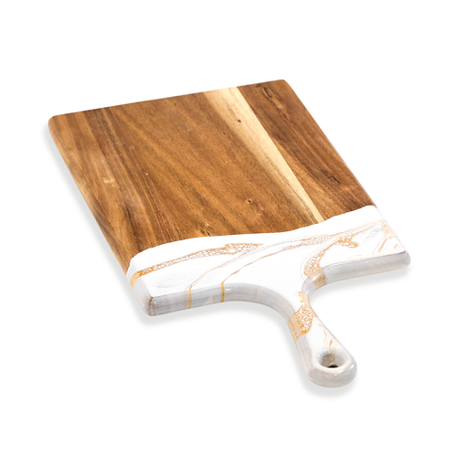 White/Grey/Gold 10" x 20" Acacia Resin Cheeseboard