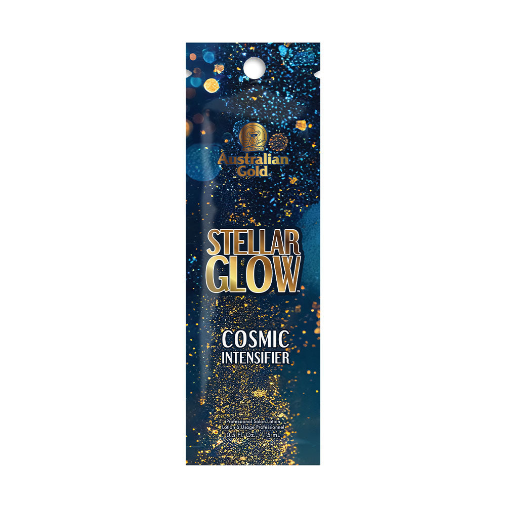 Let the stars align with Stellar Glow™ Intensifier, a celestial blend designed to elevate your tanning experience. The Cosmic Intensifier helps boost melanin production for an astronomical color and radiant glow. The Virtuous Vitamin Fusion keeps skin soft and luminous. Reveal your inner brilliance with the Star Power Skin Conditioning Complex—an ethereal mix of botanicals that replenishes and revitalizes. Energy Boost works to tone and invigorate for a luminous, gold star finish. Let your glow reach stellar status.