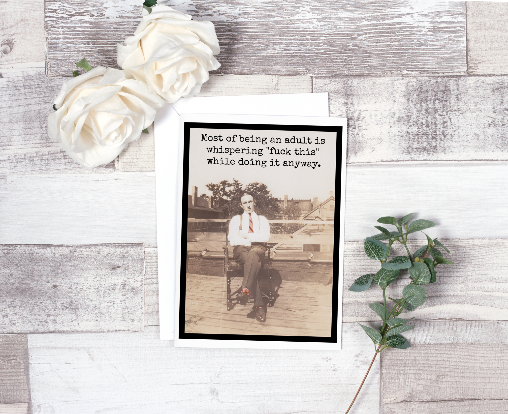 > Cards are printed on high quality card stock, glossy outside/matte inside.