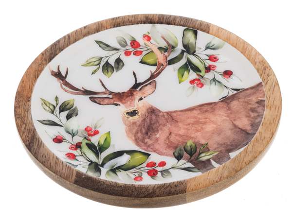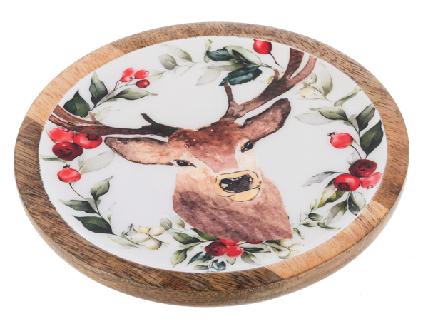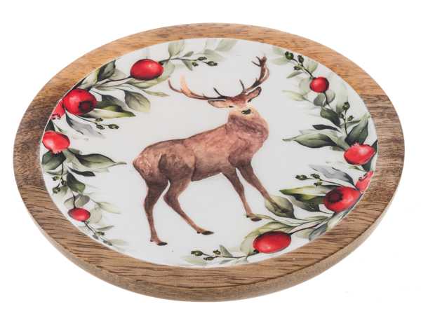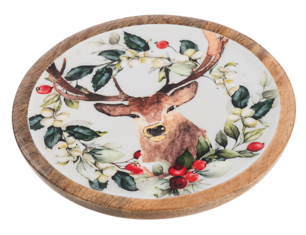 Round Holiday Stag Tidbit Tray
